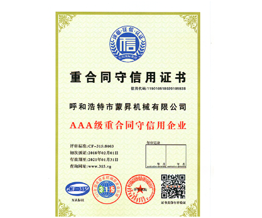 重合同守信用證書